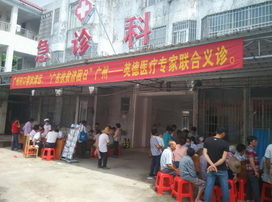 6月29日,广州市卫计委联合广州对口帮扶清远指挥部在英德市九龙镇组织开展了扶贫济困日义诊活动。活动当日,来自广州市中医院、清远市人民医院等单位的20多名专家和医护人员为600余名村民提供了义诊服务,发放药品药械总值约13000元,受到了广大村民的热烈欢迎。