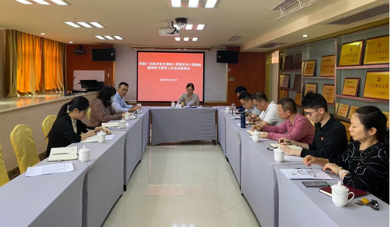 根据党中央统一部署及省委、韶关市委、广州市协作办机关党委工作要求,3月25日下午,韶关市人民政府驻广州办事处(以下简称“驻广办”)机关党支部组织召开深入贯彻中央八项规定精神学习教育工作动员部署会。会上,党组书记、主任熊菁华作动员讲话,党组成员、副主任、党支部书记陈利军主持。机关全体党员干部参加会议。