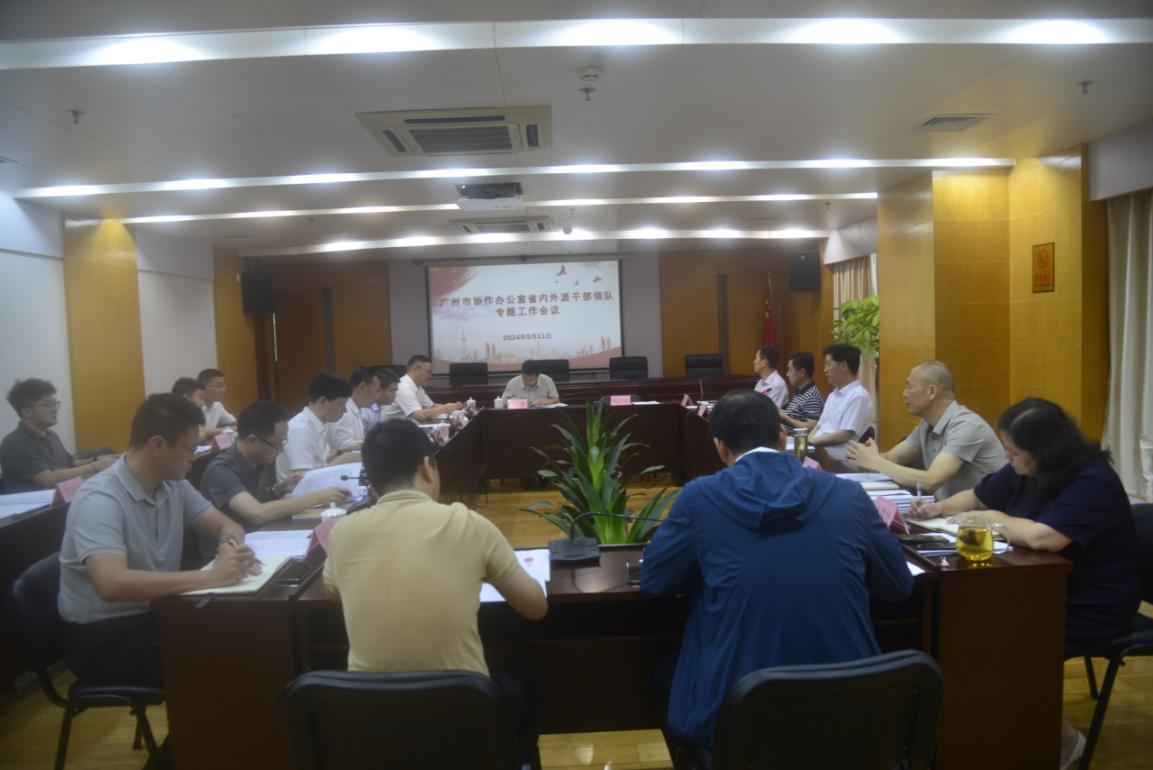 5月11日上午,广州市协作办公室召开省内外派干部领队专题工作会议,传达学习省委农村工作会议暨深入实施“百县千镇万村高质量发展工程”推进会会议精神,以及市的有关工作要求。市协作办党组书记、主任霍阳出席会议并讲话,广州对口帮扶协作梅州指挥部指挥长张文杰,广州对口帮扶协作湛江指挥部指挥长顾伟星,广州对口帮扶协作清远指挥部指挥长邓耀雄,广州对口产业协作肇庆工作组组长邹润昌在会上谈学习体会并就下一步贯彻落实工作重点进行发言,市协作办二级巡视员李自根,一级调研员(市管)包和平,广州派驻梅州市蕉岭县、湛江市雷州市、湛江市廉江市、清远市英德市、清远市连州市工作队负责同志,市协作办对口支援处、秘书处负责同志,以及相关工作人员参加会议。