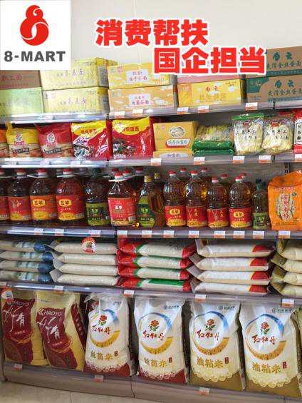 8字连锁店积极承担社会责任,发扬国企担当,在巩固脱贫攻坚成果、消费帮扶及乡村振兴工作方面作出贡献,甄选地区特色农副产品,通过线上平台和实体门店多渠道实现农超对接,主要销售贵州、新疆、西藏及广东粤北、粤西地区农副产品,满足市民和机团单位购买帮扶地区产品的需求,把消费帮扶和满足人们对原生态健康产品的需求较好地结合对接,为众多帮扶产品提供展销平台。